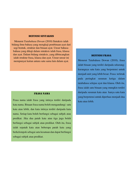 Jadi makna dalam frasa tidak akan jauh dari makna kata pembentuknya. Pengadilan berutang budi. Frasa adalah dua kata atau lebih yang tergabung dan memiliki satu makna yang berubah ubah menyesuaikan dengan konteks gramatikal atau dengan kata lain kesatuan kata gabungan kata yang terbentuk dari kelompok kata sehingga dapat disimpulkan bahwa definisi frasa berarti dua kata atau lebih yang tergabung menjadi satu makna yang dapat berubah sesuai dengan konteks. Ia adalah antara empat kategori frasa yang terdapat dalam bahasa melayu dan mempunyai fungsi yang banyak dalam pembinaan frasa dan ayat.