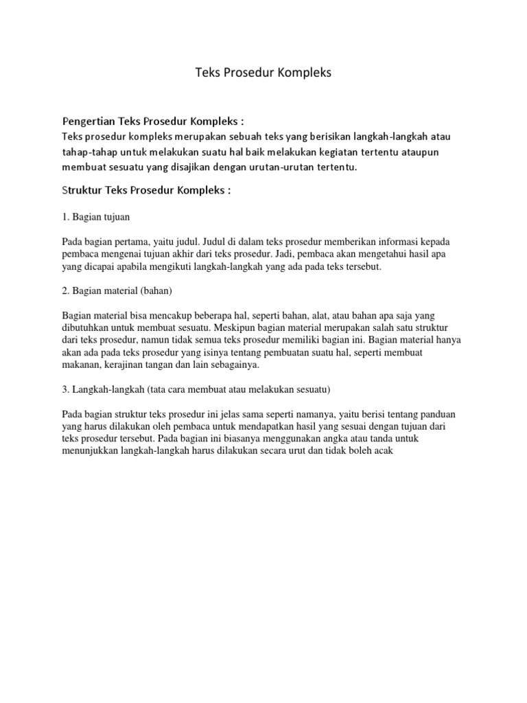 Pengertian tujuan ciri struktur kaidah kebahasaan macam dan contoh teks prosedur. Teks prosedur adalah teks yang berisi langkah langkah atau tahap tahap yang harus ditempuh untuk mencapai tujuan. Gurupendidikan com apabila kamu dalam hal ini pernah menemukan teks yang didalamnya berisi ajakan kepada seseorang singkat padat dan jelas mungkin itu adalah teks eksposisi karena ciri teks ini menjawab pertanyaan apa siapa kapan dimana mengapa dan bagaimana. Pengertian teks prosedur menurut para ahli kamaeuddin.
