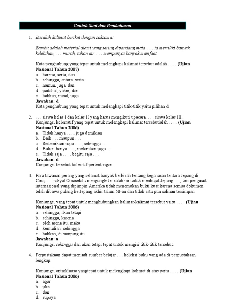 Dengan mencermati isi kalimat dan hubungan antarkata pada bagian yang rumpang pada teks tersebut konjungsi yang tepat untuk melengkapi tersebut yaitu adalah pilihan jawaban b. 5 kalimat kalimat itu dipertalikan dengan berbagai piranti yang cukup banyak tidak kurang dari 15 jenisnya.