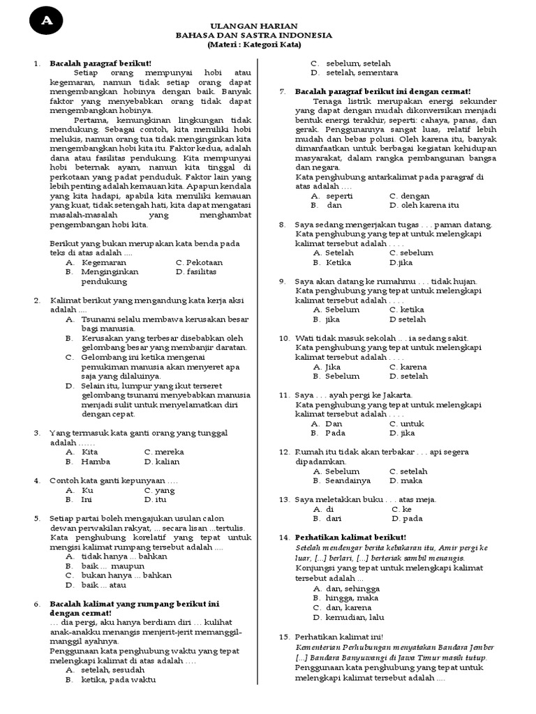 Disajikan sebuah kalimat paragraf rumpang peserta didik dapat mengisi dengan konjungsi kata hubung yang tepat. Disajikan kutipan kalimat atau paragraf rumpang siswa dapat melengkapinya dengan kata atau kalimat yang tepat. Contoh kata hubung nya adalah. Jalannya sangat lambat seperti siput.