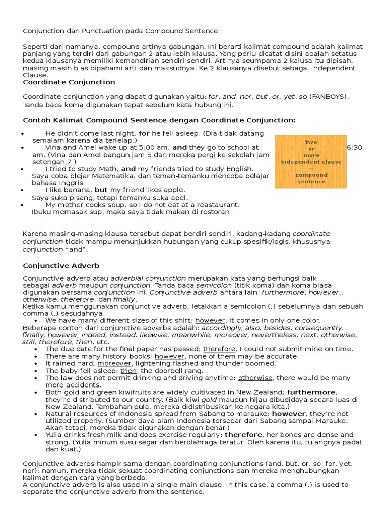 Sama seperti complex sentence dalam merangkai kalimat compound complex sentence kamu juga akan menggunakan kata penghubung conjunction untuk menghubungkan antara kalimat yang satu dengan kalimat yang lainnya. When dan lainnya tanda titik koma digunakan sebelum kata penghubung dan tanda koma setelah kata penghubung tersebut. Compound complex sentence merupakan gabungan sehingga dalam satu kalimat dapat terdapat lebih dari satu klausa independen. You are good but naughty.