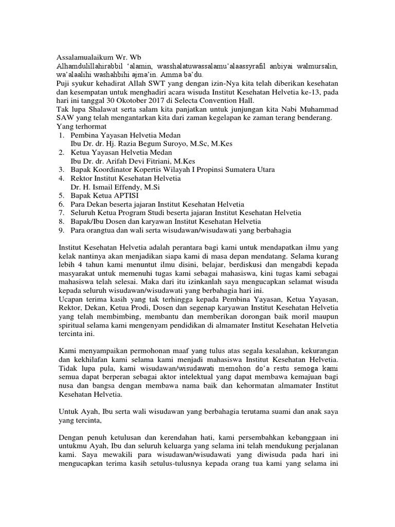 Kepada orang tua orang tua asuh donatur penyedia beasiswa dan keluarga wisudawan saya turut bersyukur berbahagia dan sekali lagi mengucapkan selamat atas keberhasilan mereka. Pemerintah aceh pada 30 april 2013 di banda aceh. Bapak ibu wali dan orang tua siswa smpn3 sidayu yang dirahmati allah. Pada wisuda universitas islam sultan agung semarang ke 40.