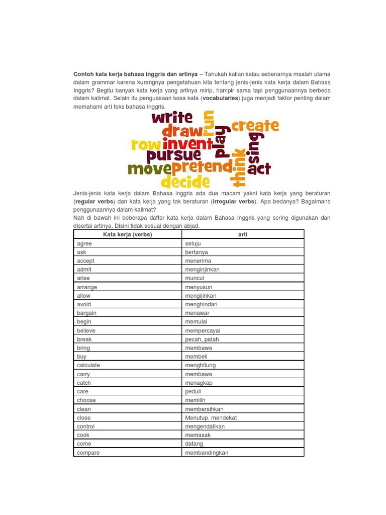 Kosa kata benda bahasa inggris dan artinya. Kata kerja dalam bahasa inggris merupakan kosa kota penting karena dapat menjadi kata sambung untuk menghubungkan tindakan masa lampau dan masa depan situasi atau kemungkinan kemungkinan yang anda hadapi. Nah jika memang iya admin ingin berbagi pada kalian kata kata. 150 contoh irregular verb dan artinya sehari hari kata kerja tak beraturan apa itu bachelor degree undergraduate graduate dan postgraduate penulisan tanggal dalam bahasa inggris formatnya american dan british 150 kata sifat dalam bahasa. Menguasai kata kerja dalam bahasa inggris merupakan pondasi awal perbendaharaan kosa kata bahasa inggris anda karena hal ini dapat membantu anda menjelaskan tindakan maupun kondisi.